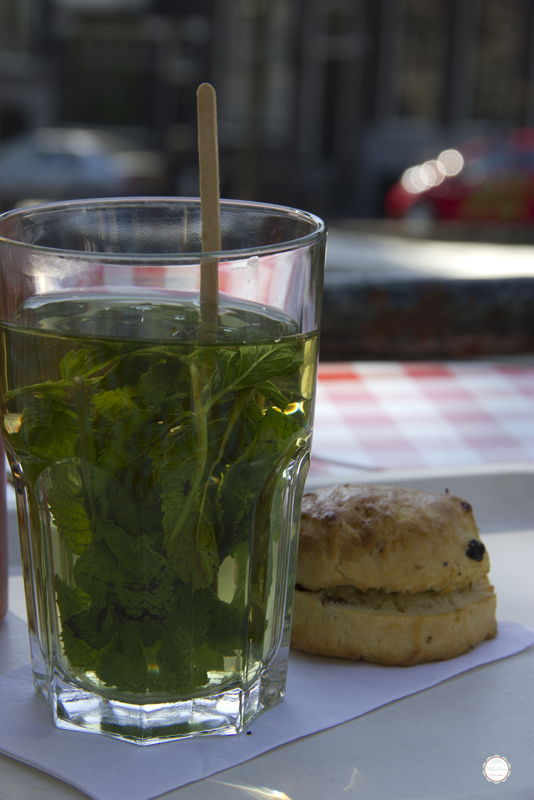 U jednoj jutarnjoj šetnji smo pili organski čaj od svežih listića nane i počastili se jednim scone-om sa suvim grožđem – presladak doživljaj, odmah do kanala 🙂
