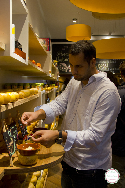 U nekom od sokačića naišli smo na prodavnicu sireva i svih potrebnih alata za njihovo konzumiranje. To je jedno od onih turističkih mesta u koje kad uđeš ne znaš u koju si zemlju došao od raznoraznih jezika koje čuješ. Nama je ipak jednosatna degustacija sireva i umaka bila nezaboravna 🙂 Kupili smo nož za sir, pronašli svoj omiljeni sir koji je na našu veliku žalost koštao više od 20 eura za komad od 200g, što nam je opet na našu veliku žalost bilo previše da damo 🙂 Taj sir o kojem govorim je sir koji se zove Old Amsterdam, tako je mirisan, mator, aromatičan i mogla bih da se davim u njemu! Pronašli smo pakovanje od 100g kada smo jednom prilikom posle toga išli u Mađarsku pa smo ga kupili i pojeli klot, uz pivo i film 🙂 U toj prodavnici je bilo i lepih kiševa, mini tartova, peciva, noževa, umaka, senfova, posuda za fondue… Baš fin doživljaj!