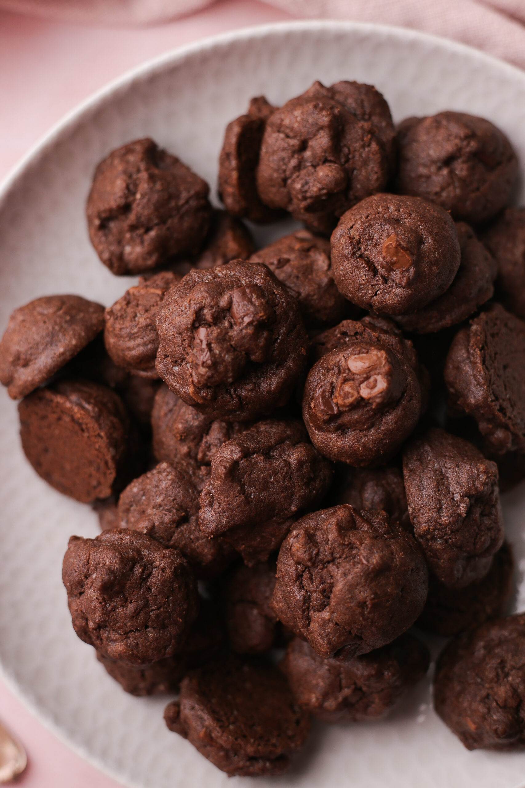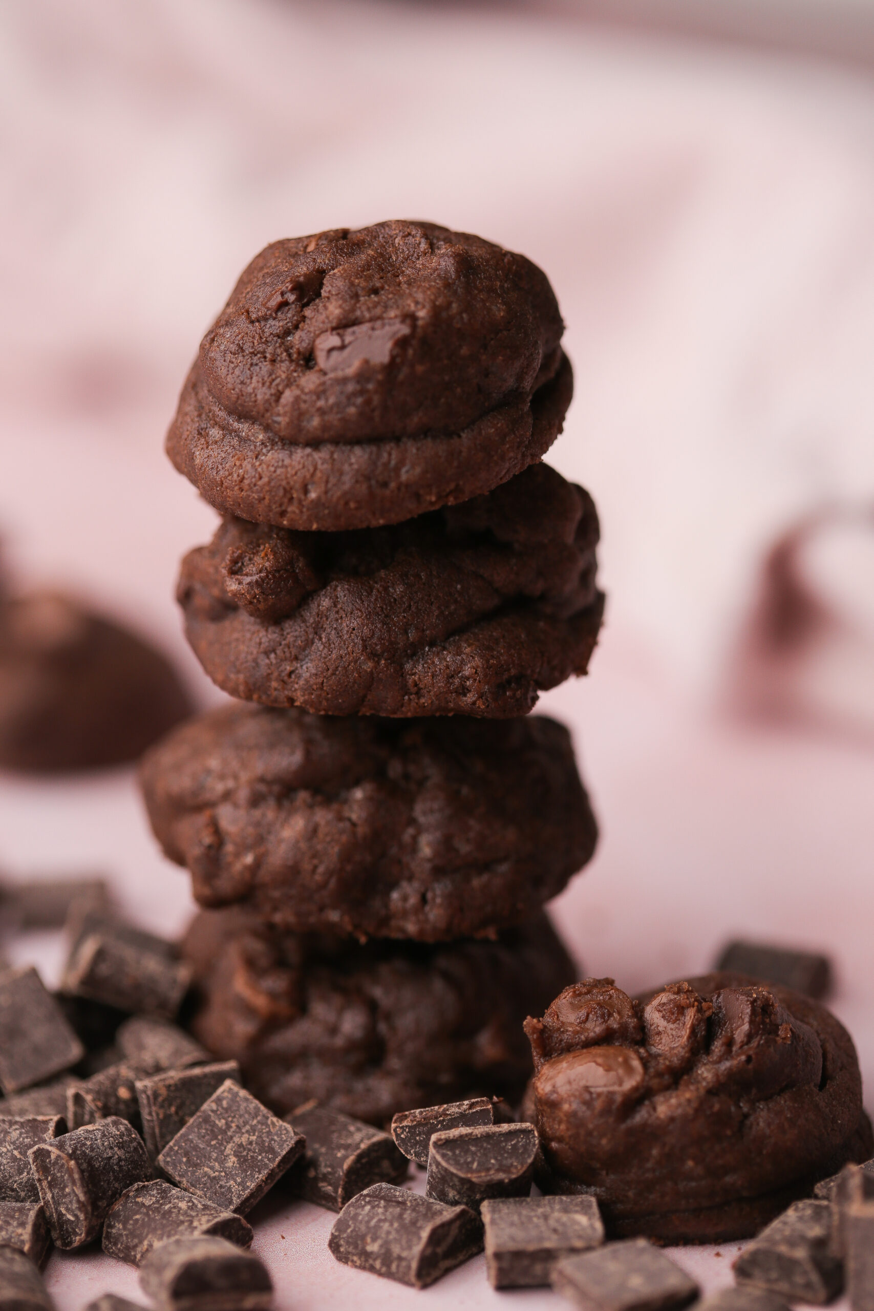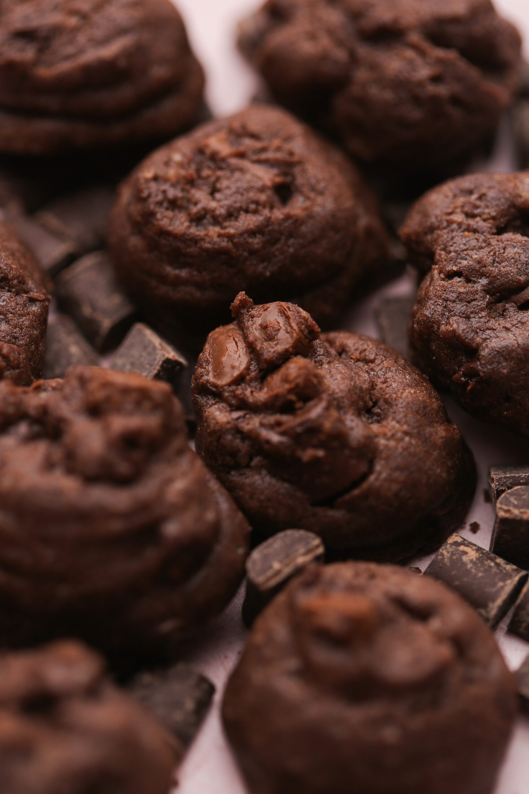 Puter i šećer dobro umutite pa dodajte jedno po jedno jaje. Dodajte kakao i dobro sjedinite. Zatim, dodajte brašno koje ste izmešali sa sodom bikarbonom i mutite tek toliko da se brašno sjedini. Umešajte komadiće čokolade i odmah pravite keksiće tako što ćete kašičicom vaditi smesu i formirati prstima tek toliko da ima formu kuglice. Ređajte na pleh tako da kuglice imaju po 4-5 cm prostora između sebe. Pecite 20-22 minuta u rerni zagrejanoj na 160 stepeni.