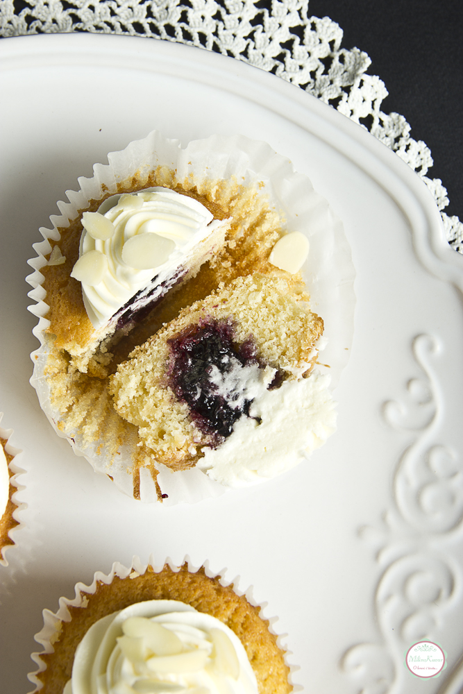 Cupcakes sa belom čokoladom i marmeladom od crne ribizle