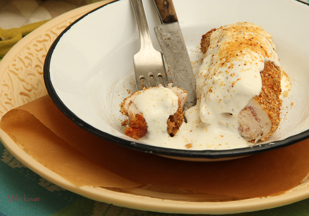 Prošlo je godinu dana od kada sam napravila fotografije Piletine Cordon Blue i stavila ih u arhivu. Čekale su da ih objavim, ali sirotice na kraju nisu ni ugledale svetlost dana jer sam ih kao što vidite zamenila novim, lepšim i sočnijim fotografijama ☺ Tada, pre godinu dana sam ovu piletinu pravila za rođendan, pretpostavite kome, i nikada nisam posle toga pravila ništa slično jer me je opterećivalo prženje na ulju. Nije da vodim računa šta jedem, ali to prženje me uvek odbije iako je ukus prženih prezli u kombinaciji sa brašnom i jajima – neprevaziđen.